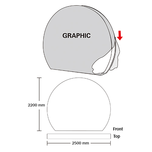 Design Wall Drum, formaat 250x220x40cm, voorzien van fullcolor print op stretch textiel